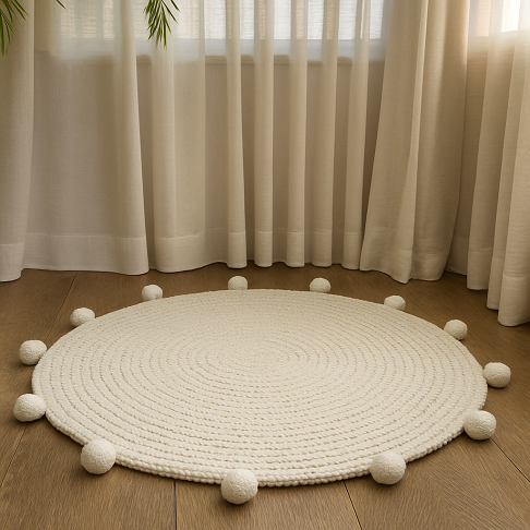 "נאנדי" – שטיח יוטה טבעי עם מעוייני פלומת כותנה