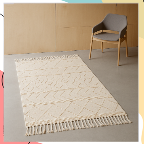 "נואיבה" – שטיח 100% כותנה בצבע טבעי מעוטר פרנזים רוחביים של יוטה הודית