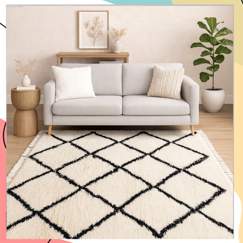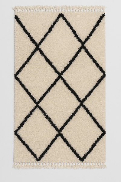 "מרקש גיאומטרי" – שטיח שחור-לבן בעיצוב מרוקאי