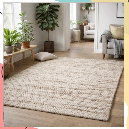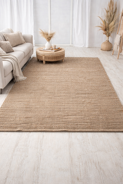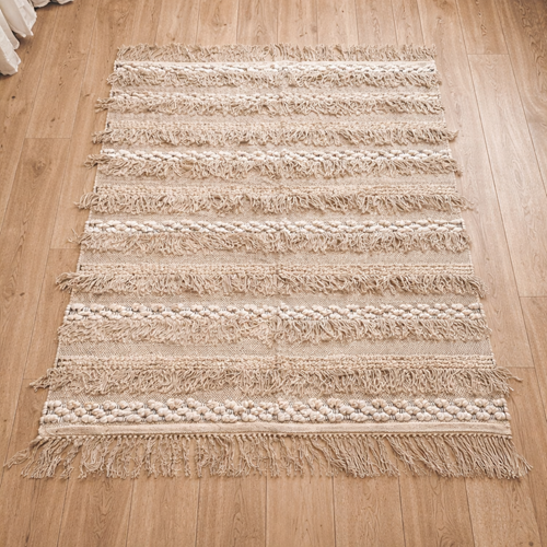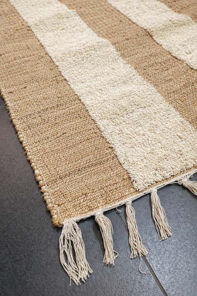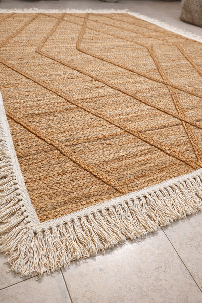 "שיבאן" – שטיח "בוהו" אמיתי יוטה בהירה משולבת עם פלומת כותנה רכה