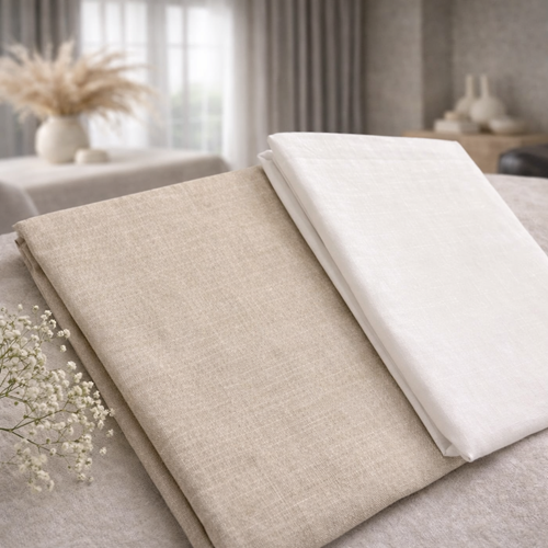 "מאיה" – קולקציית מפות שולחן כפריות חלקות דוחות כתמים | בצבע לבן או פשתן טבעי