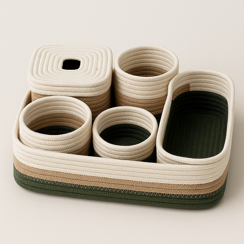 "נדין" – סט כלי רחצה עשוי חבל הודי וכותנה בעבודת יד עמיד לנוזלים | שני צבעים לבחירה
