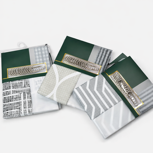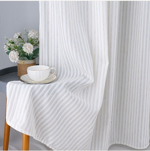 "פולי" – וילון אמבטיה מבד דו שכבתי פסים עדין ויוקרתי | בשילוב צבעים לבן ואבן