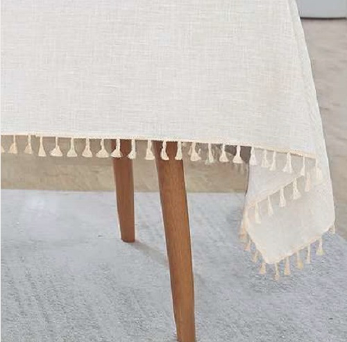"לבנה" – מפת שולחן חג לבנה בעיצוב כפרי עם פונפונים ברמת גימור פרימיום | בד תערובת כותנה | ללא גיהוץ