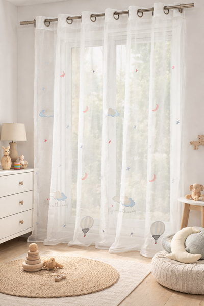 “רוקי” – וילון וואל רקום חלומי לחדר ילדים | כדורים פורחים