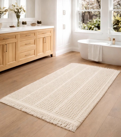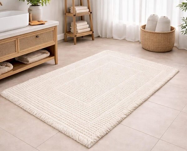 "נועה" – שטיח כביס 100% כותנה בצבע שמנת עם תבליטים נורדיים