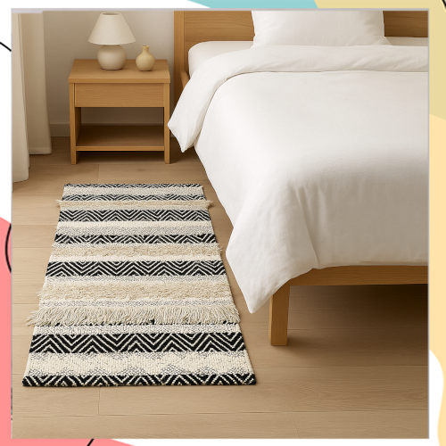 "נואיבה" – שטיח 100% כותנה בצבע טבעי מעוטר פרנזים רוחביים של יוטה הודית