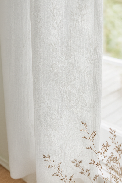 וילון אלגנטי ועדין המכניס לחלל אור טבעי ורכות, עם רקמת תחרה פרחונית שמוסיפה טאצ' רומנטי וקלאסי.