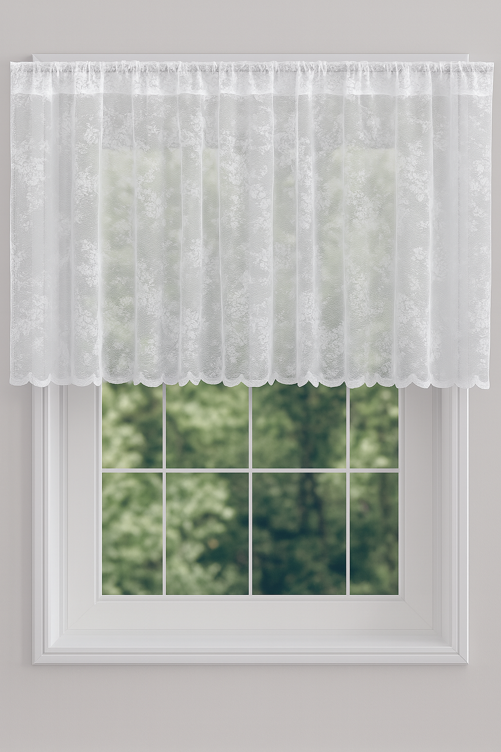 "מיקה" – וילון וואל שקוף עם מכפלת נסתרת מעוטר בתחרה פרחונית מגיע גם ככותרת