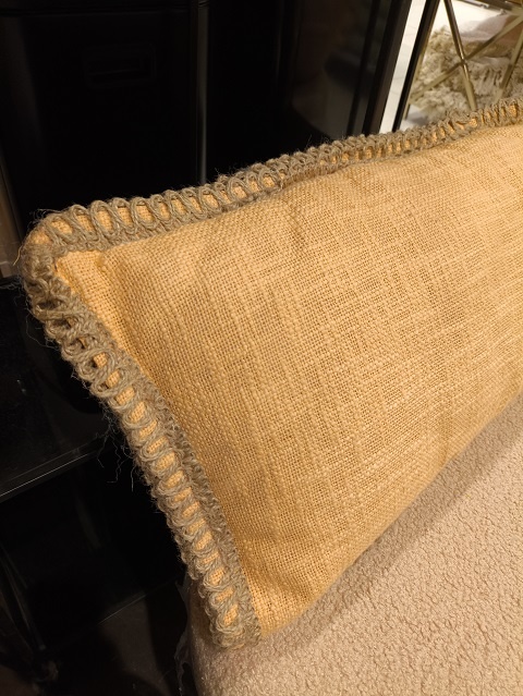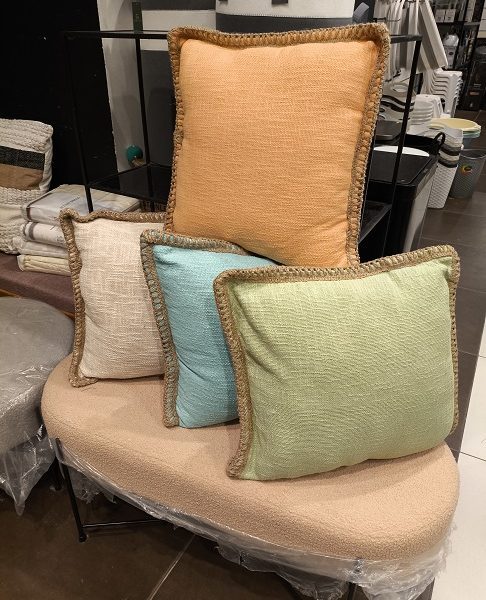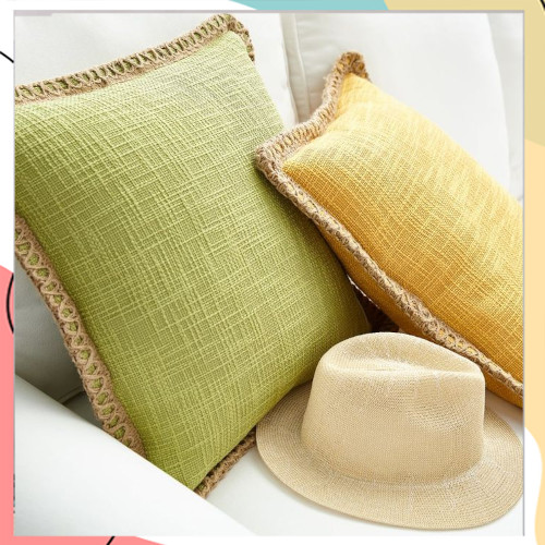 יוטה ארוגה: היקף הכרית משולב ב-יוטה ארוגה, מה שמעניק לכרית מראה טבעי ויוקרתי.