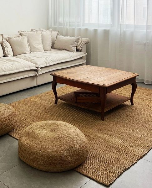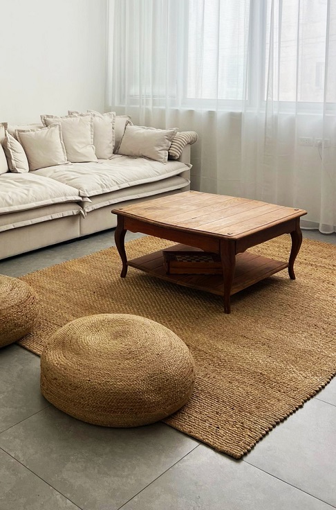 "הדס" – שטיח חבל צמות עבות בהיר כולל בטנה תפורה | יציב ועבה | עד מידת ענק
