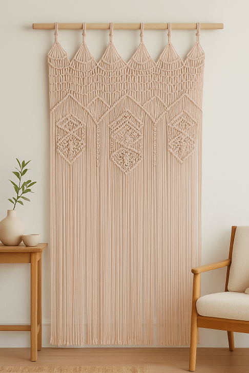 ✅ כותנה בעבודת יד: וילון עשוי מקרמה איכותית, התפורה בעבודת יד – שילוב בין מסורת לאומנות.