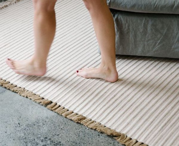 "נואיבה" – שטיח 100% כותנה בצבע טבעי מעוטר פרנזים רוחביים של יוטה הודית