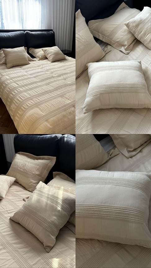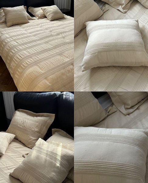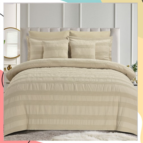הפכו כל שינה לנעימה ומרגיעה עם הסט המפנק הזה, העשוי מפרקל כותנה בצפיפות 300 חוטים, אשר מעניק נוחות מושלמת ומראה יוקרתי לכל חדר שינה. הסט כולל עיטורי כיווצים מעודנים, שמוסיפים טאץ' של אלגנטיות לעיצוב הכולל.