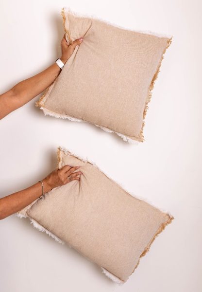 "פיטר" – כריות נוי בעיצוב פראי משופשף עם פרנזים – 100% כותנה
