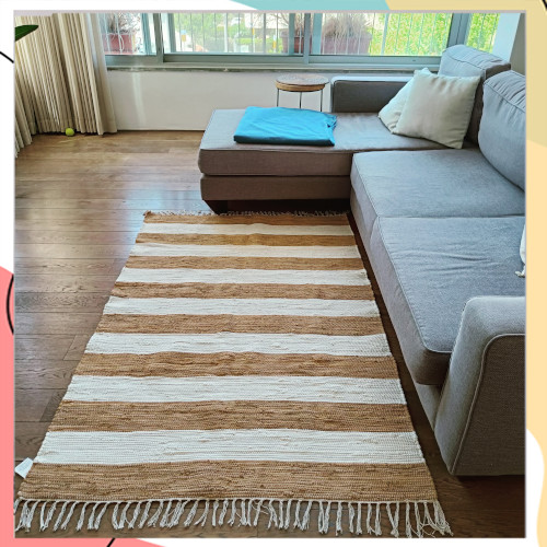 100% כותנה: שטיח עשוי כותנה איכותית, ארוג בעבודת יד, שמבטיח עמידות ורכות.